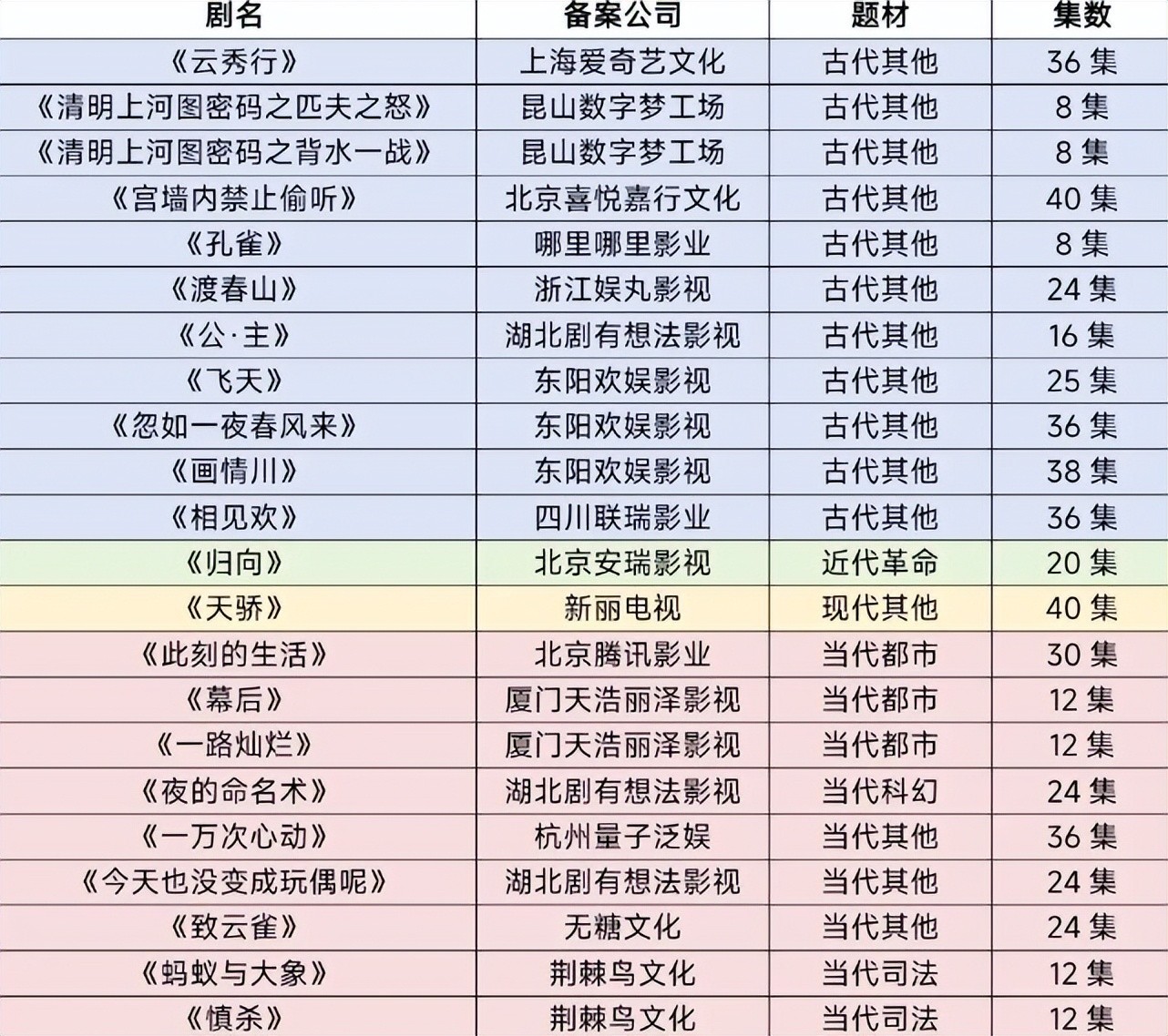 讨论到备案公示片单骨子“上线率”有限,若不进行这一步筛选,便难以准确评估题材分散确凿凿情况。