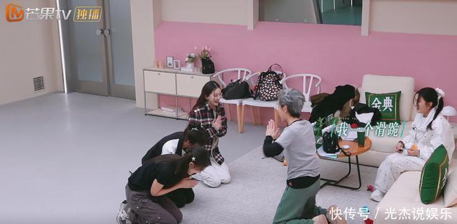 当叶童看到李艺彤、努恩、房琪三个小孩下跪之后,二话没说就径直随着跪下了。