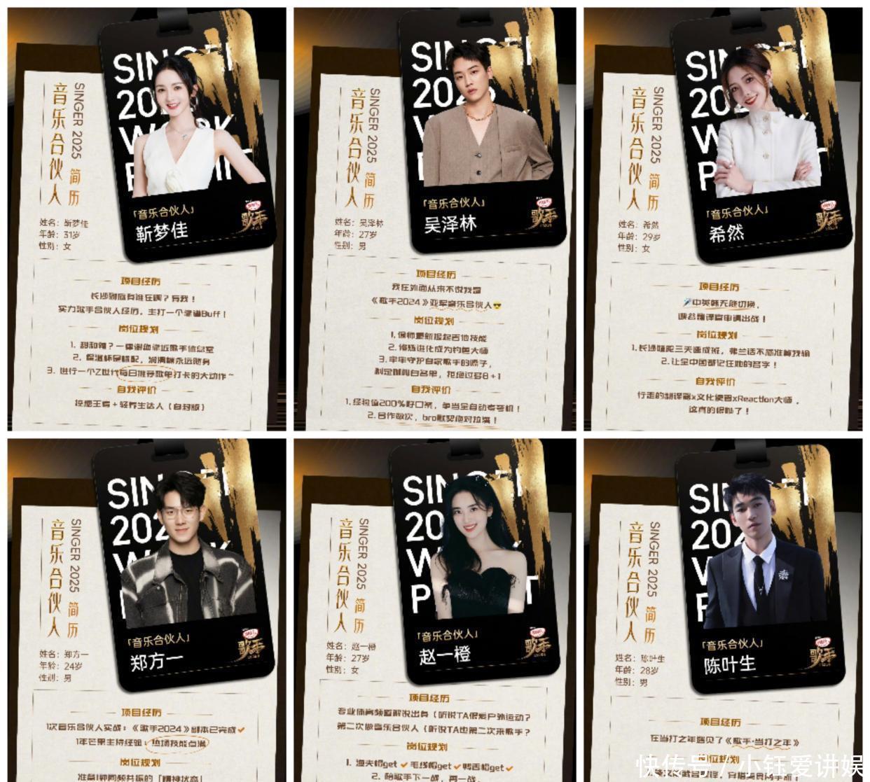 郑方一、泽林、希然等六位新晋音乐结伴东说念主也各怀绝技,他们将深度参与歌手的音乐创作与舞台呈现,为歌手添砖加瓦。