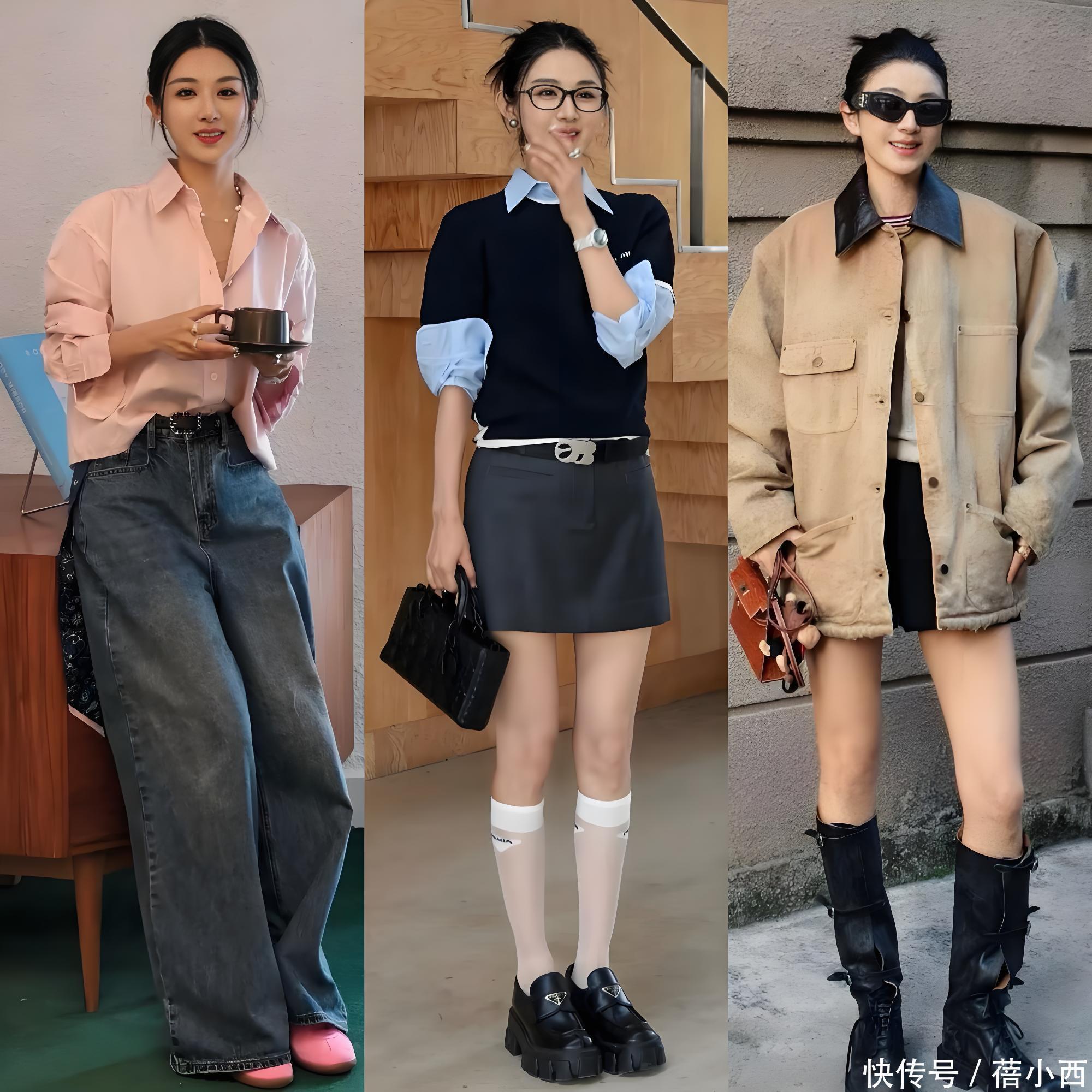 更让东谈主宽解的是,她很少碰大面积撞色或复杂斑纹,更心爱选莫兰迪色系、地面色这些“安全牌”。像雾霾灰、豆沙色、浅咖色,对肤色的包容度额外高,黄皮穿了显气色,白皮穿了更衬气质,统统这个词搭配色调限度在3种以内,如何搭王人不会出错。