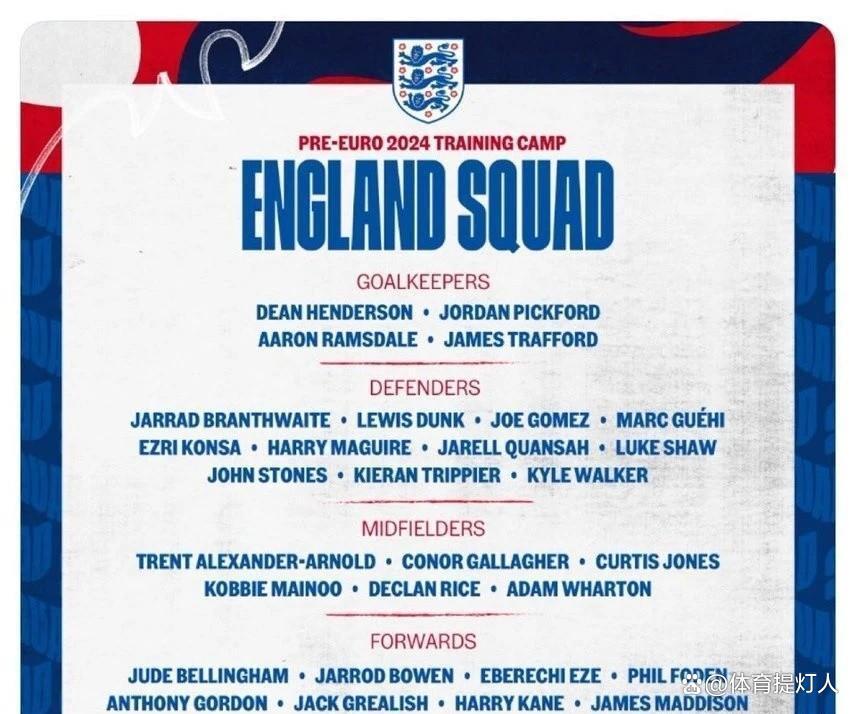 据报谈,英格兰队的缓助者们对主解说加雷斯·索斯盖特作念出的决定感到困惑,他在制定2024年欧洲杯的初步名单时,