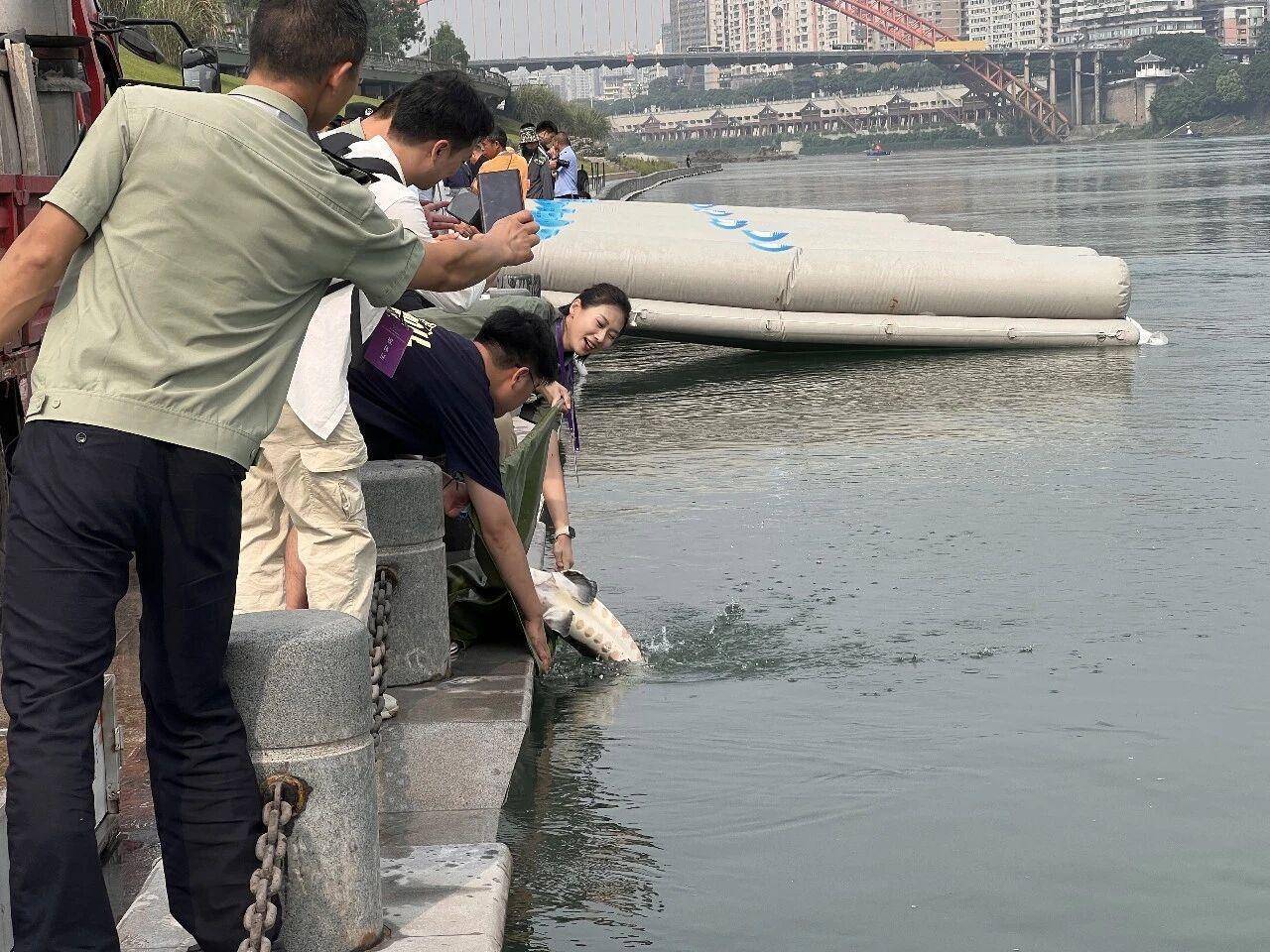 长江鲟鱼增殖放流 图据宜宾公安