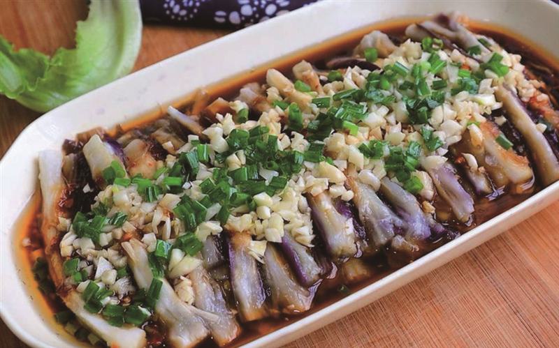 蒜蓉蒸茄子 保举意义:茄子蒸熟后加蒜蓉、酱油和香油,软糯入味,清淡不浓重。